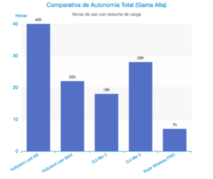 Fuente: Datos de autonomía extraídos de las webs oficiales de DJI, Rode y Hollyland.