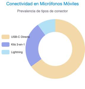 • USB-C:  El nuevo estándar de oro. Es la conexión nativa para los iPhone 15 y modelos posteriores, así como para la gran mayoría de los teléfonos Android modernos. Ofrece una conexión digital directa, «plug-and-play», que a menudo permite cargar el teléfono mientras se usa el micrófono.