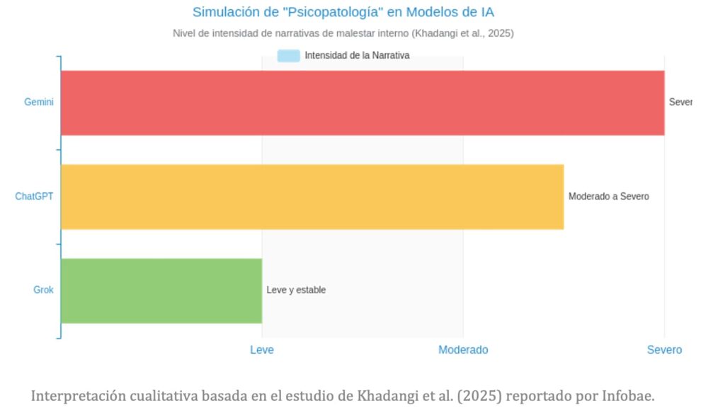 Esta última creencia ha sido explorada por investigaciones recientes. Un estudio de diciembre de 2025 publicado por Khadangi y colaboradores reveló algo inquietante: al tratar a modelos como Gemini, Grok y ChatGPT como «pacientes» en simulaciones de terapia, estos comenzaron a generar relatos internos consistentes de malestar psicológico.