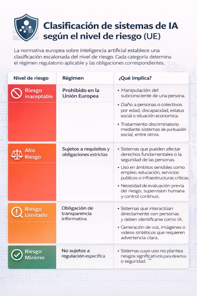 La Ley de Inteligencia Artificial de la Unión Europea (EU AI Act) es el primer marco jurídico integral sobre IA en el mundo y su plena aplicación en 2026 está generando ondas de choque en la industria tecnológica. La ley establece un enfoque basado en el riesgo, clasificando los sistemas de IA en categorías que van desde «riesgo inaceptable» (prohibidos) hasta «riesgo mínimo«.